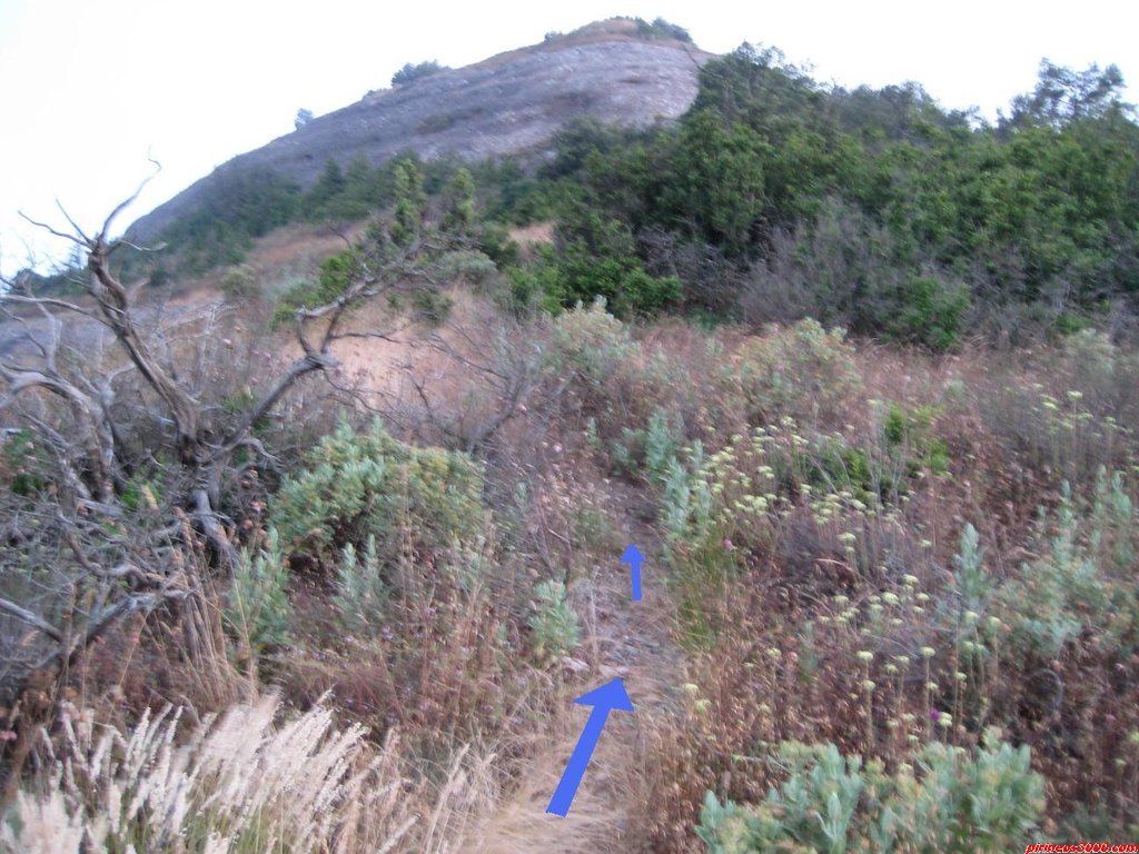 FOTO 2: Aquest es el sender a què es refereix el text de l anterior foto, observeu que hi ha una fita (cercle blau) que ...