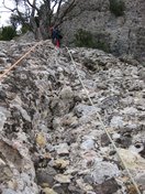 Apartir de aqui nos encontramos con otro tramo de caminar/grimpar llº,donde nos encontraremos algun cordino y algun seguro ( nosotros solo vimos uno ) para asegurar algun paso con ambiente.