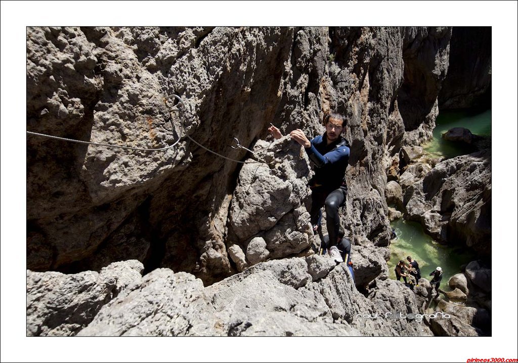 Hay una salida justo antes del rappel de 20m, a nuestra derecha. Esta escapada sale por una vía ferrata, no complicada, pero expuesta.