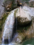 Descendiendo. Con el salto hay que llegar a la poza que se ve.