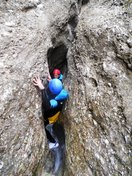 DESCENSO: La toma de contacto con el barranco se hace en un tramo de carácter abierto, que pronto empieza a estrecharse formando un pasillo muy estrecho.