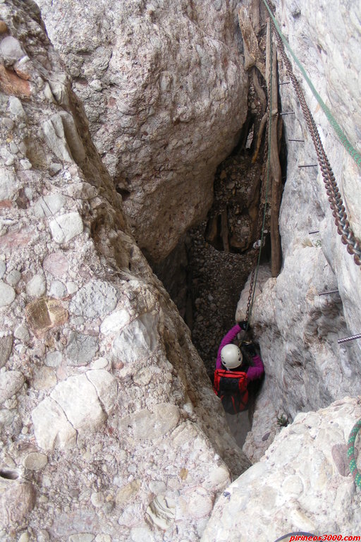 - Equipamiento de la vía: cuerdas fijas, cadenas y clavijas. Reuniones de rápel en las dos canales.