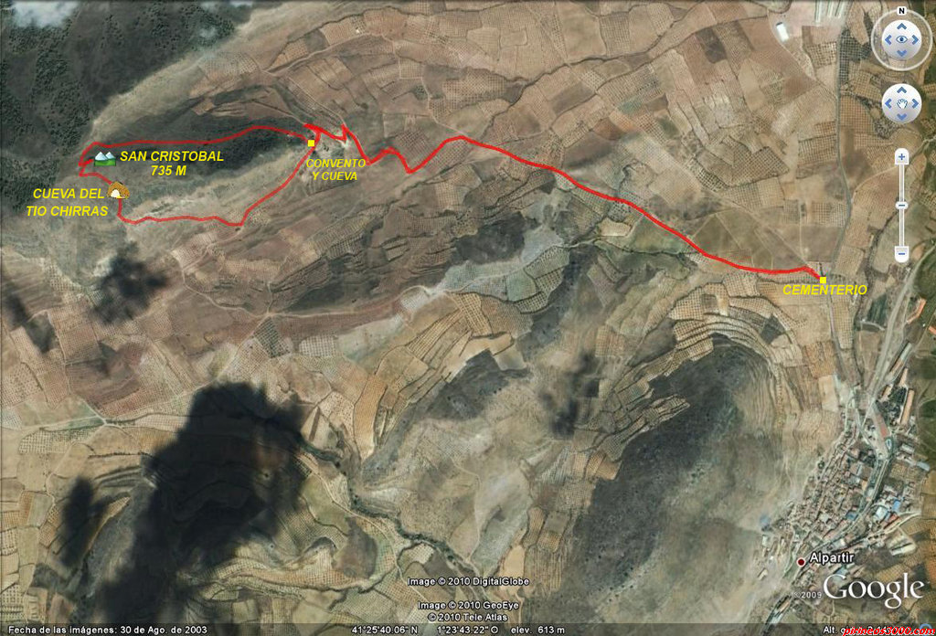 - Saliendo de Épila, rebasamos las localidades de Lucena de Jalón y Calatorao, llegando así, a La Almunia de Doña Godina, donde tomamos la carretera CV-816 que tras 6 km. nos deposita en la localidad de Alpartir, donde en su misma entrada y junto al cementerio, aparcamos el coche.