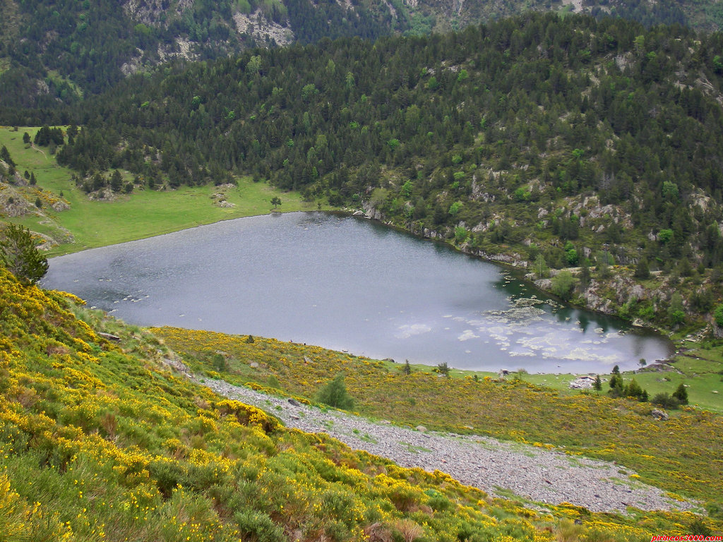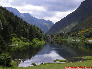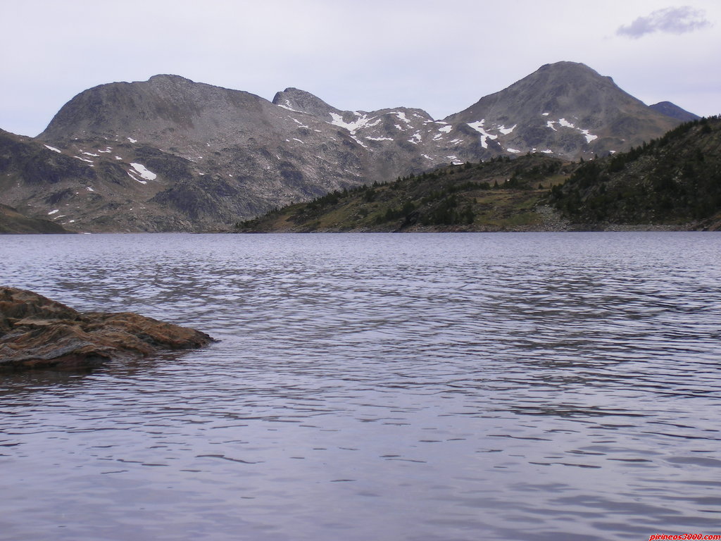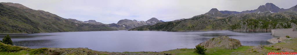 Tras remontar por la izq (W) la construcción, llegamos al pie de la presa, ante nosotros se abre una impresionante zona inundada, flanqueada por picos tan imponentes, como el Pic Peric, el Coma d?Or y el propio Carlit,
