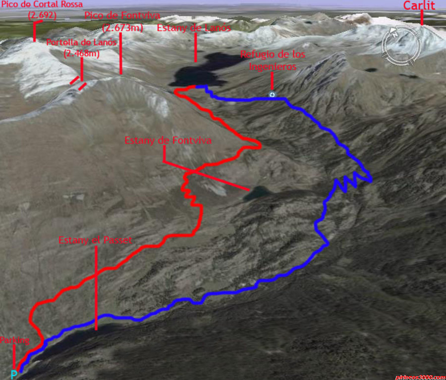 Una vez en el rústico pueblo de Porté (30 min desde Puigcerdá), a la entrada del pueblo un letrero nos indicará ?Massif du Carlit y Estany de Lanós?, así como la indicación de un camping. Se toma una pista en buen estado hasta el Parking existente en la cabecera del bonito Estany de Passet.