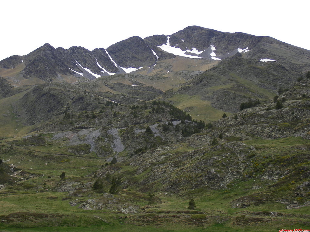 ?Camino de los Ingenieros? en la otra vertiente del valle por el que ascendimos esta mañana. Sin apenas esfuerzo, pero si mucho rodeo (el GR-7 es más directo), llegamos de nuevo al Parking donde dejamos el coche esta mañana. Son las 16:20h., destacamos y nos ha sorprendido gratamente que justo antes de las zetas que descendían al fondo del valle para llanear hacia el Parking , nos hemos topado con una enorme y muy desgastada morrena glaciar que en su día el hielo empujaba ladera abajo desde la cima del Coll Roig (2.804m).