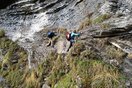 Cambiando a una grada superior en el descenso de la Ferrata del Sorros...
